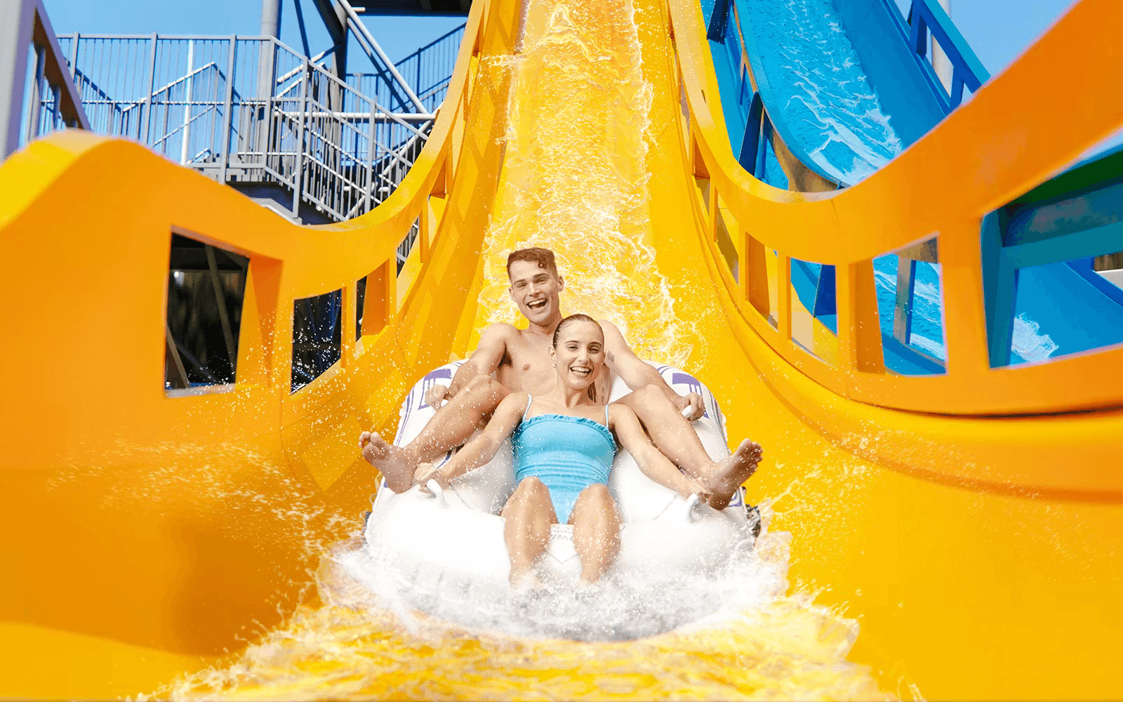 Experience water park thrills at Wet’n’Wild with rides like AquaLoop, Mammoth Falls, and the Giant Wave Pool.